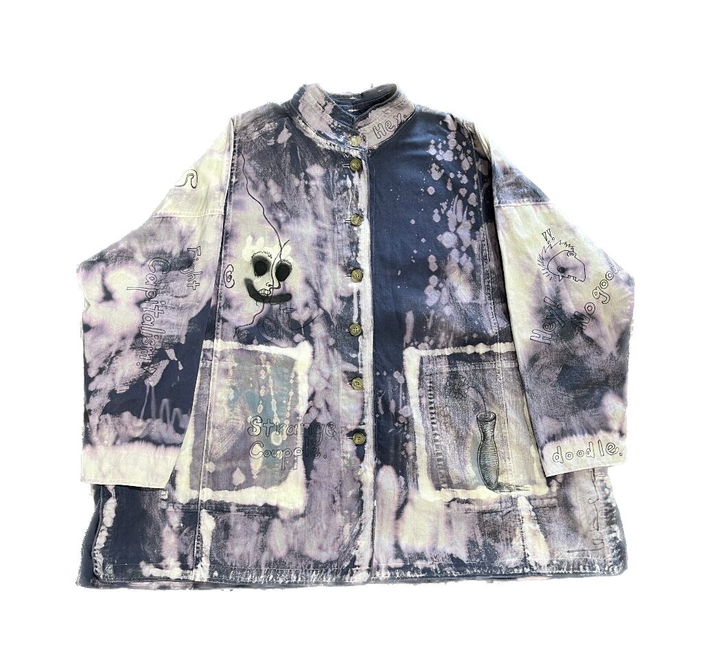 様々なサイズの筆などを用いてブリーチ(脱色)を施し、その上にペイントを加えています。